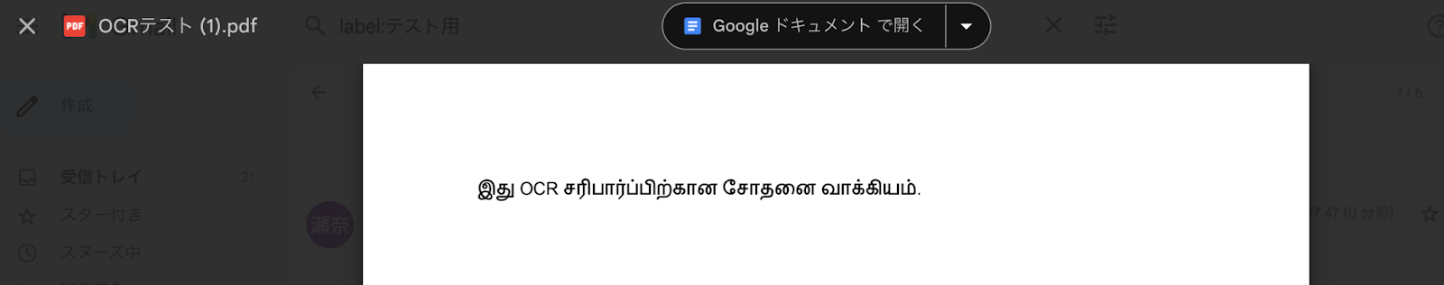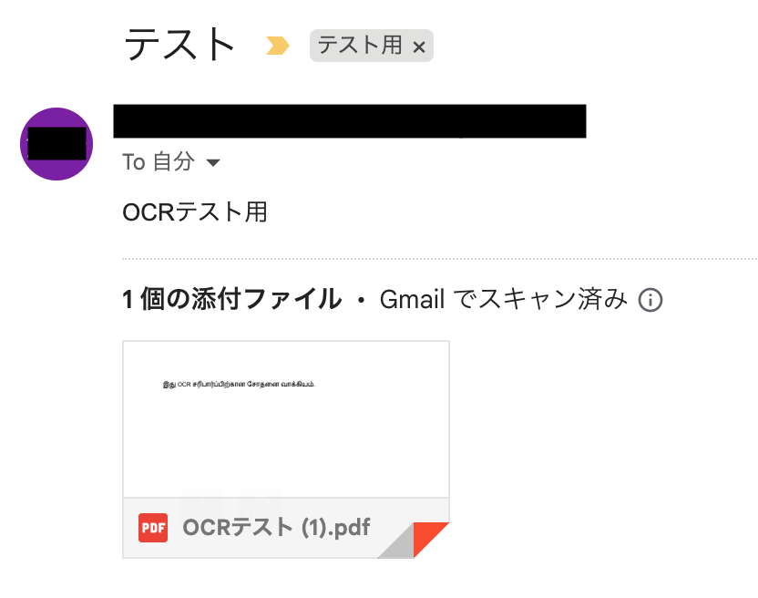 Gmailなどのメールツールで受信したタミル語のファイルを自動でOCR処理し、テキストデータを抽出する ことができます。