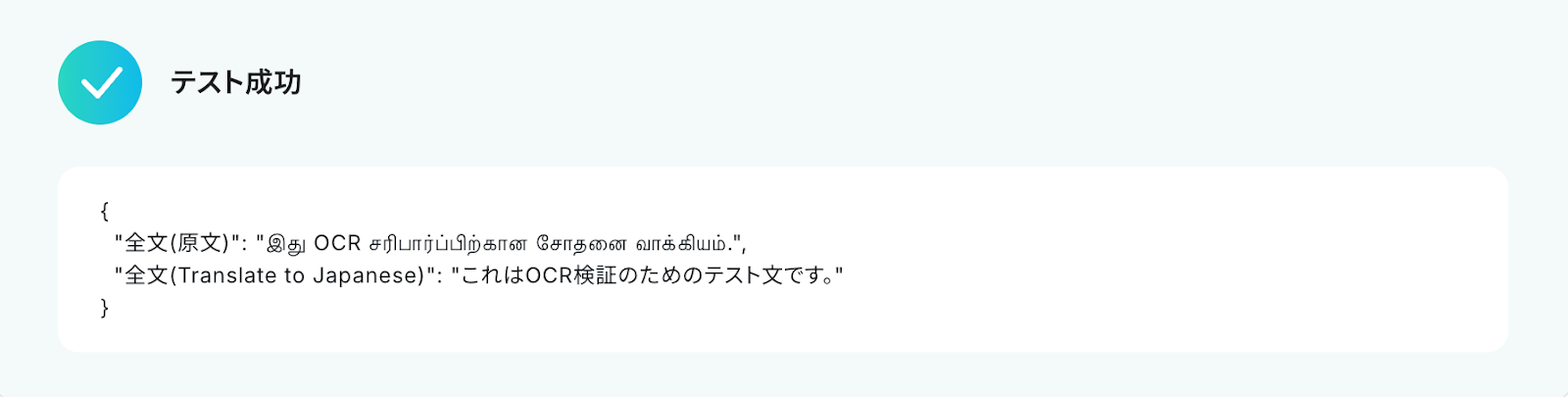 設定が完了すると、画面上に以下のようなメニューが表示されます。 トリガーをONにすることで、Gmailでタミル語のファイルを受信したタイミングで、自動的にOCR処理が実行されテキストが抽出されるようになります。 実際にタミル語のファイルをメールで受信し、OCRによってテキストが正しく読み取られるかを確認してみましょう。