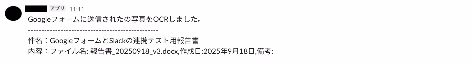 <span class="mark-yellow">Googleフォームに投稿された写真から自動で文字を読み取り、その内容をチャットツールに通知する</span>ことで、アンケートの回収や写真での報告業務などを効率化し、スムーズな情報共有を実現します!