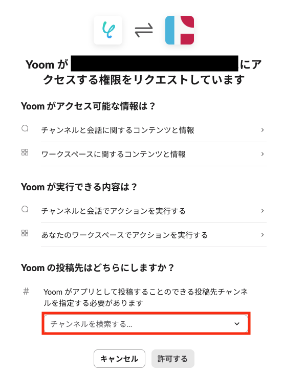 Yoomの投稿先を選択し、「許可する」をクリックすると、マイアプリ登録の完了です。