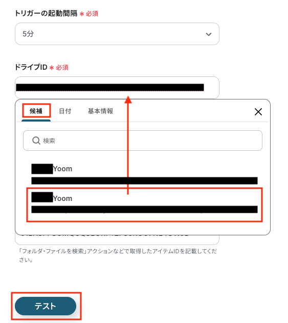 以下の画像を参考に、「トリガーの起動間隔」「ドライブID」「フォルダID」を設定します。