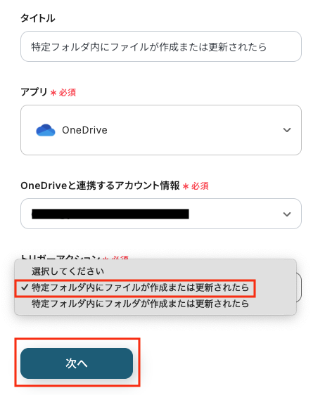 ステップ3:OneDriveのトリガー設定