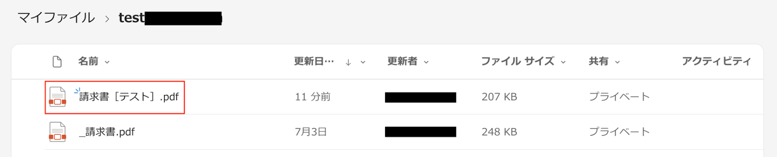 実際に、「ダウンロード」をクリックして、テスト時に作成・アップロードしたファイルと同じかどうか確認してみましょう。