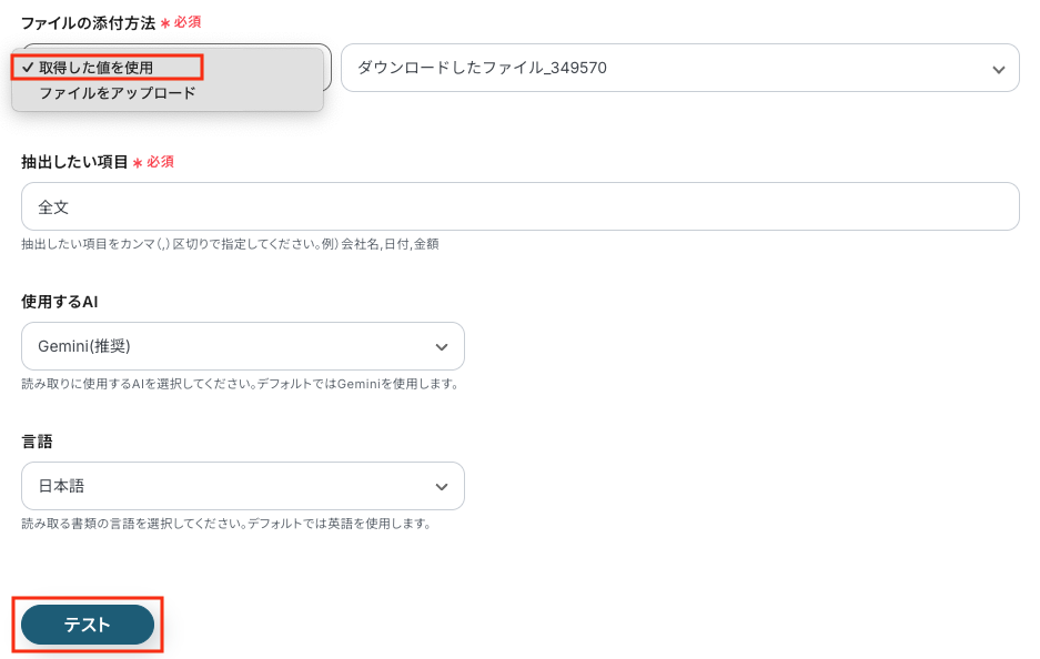 AI機能を使って、PDFから文字を読み取るための設定をします。