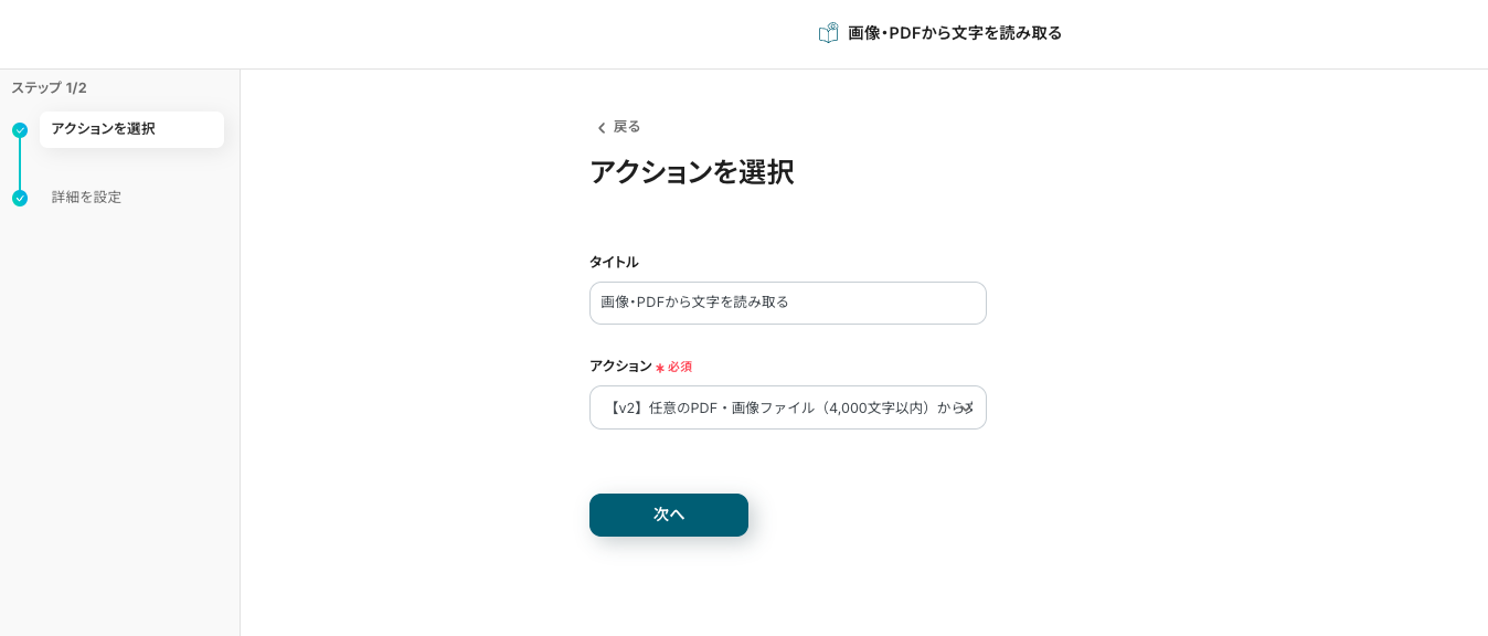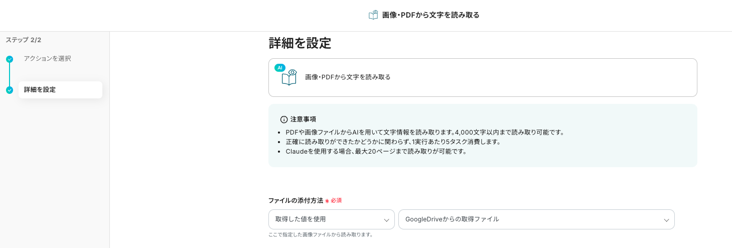 ・OCRのAIオペレーションはチームプラン・サクセスプランでのみご利用いただける機能となっております。フリープラン・ミニプランの場合は設定しているフローボットのオペレーションはエラーとなりますので、ご注意ください。