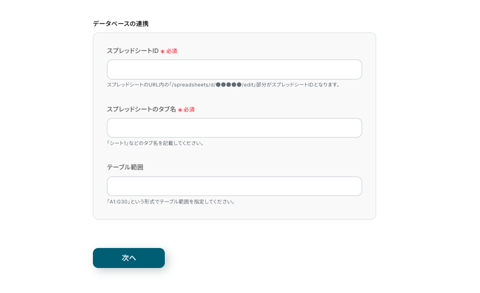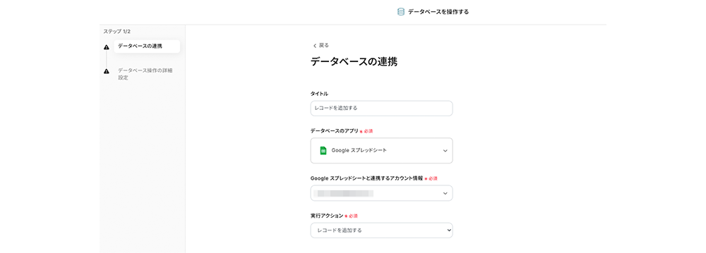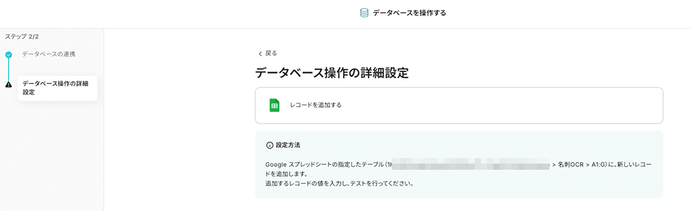 - Google スプレッドシートのアクション設定(抽出結果の書き込み)