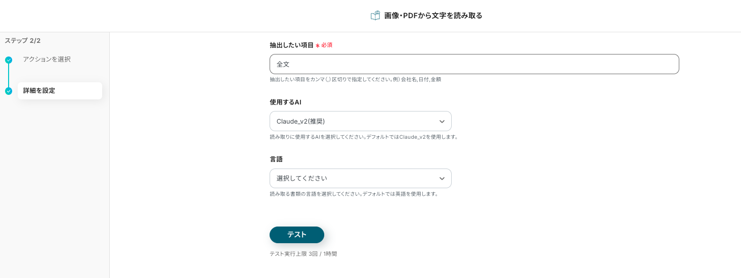 - 以下から選択可能です。任意設定のため、選ばなくても文字の抽出は可能です。