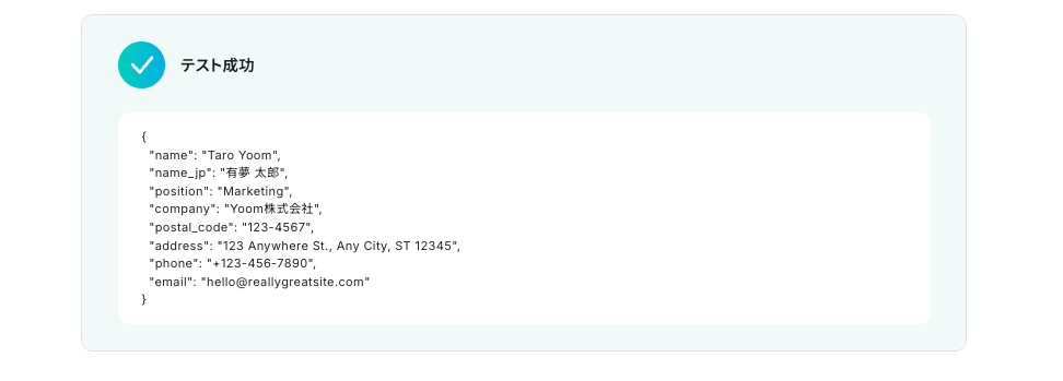 名刺データをフォームで送信すると、AIが自動で任意の情報を読み取りGoogleスプレッドシートに格納しメールを送信します。