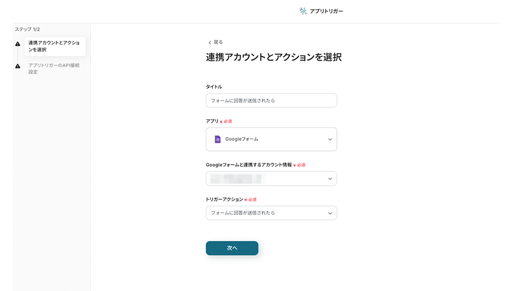 ステップ3:アプリトリガー「フォームに回答が送信されたら」