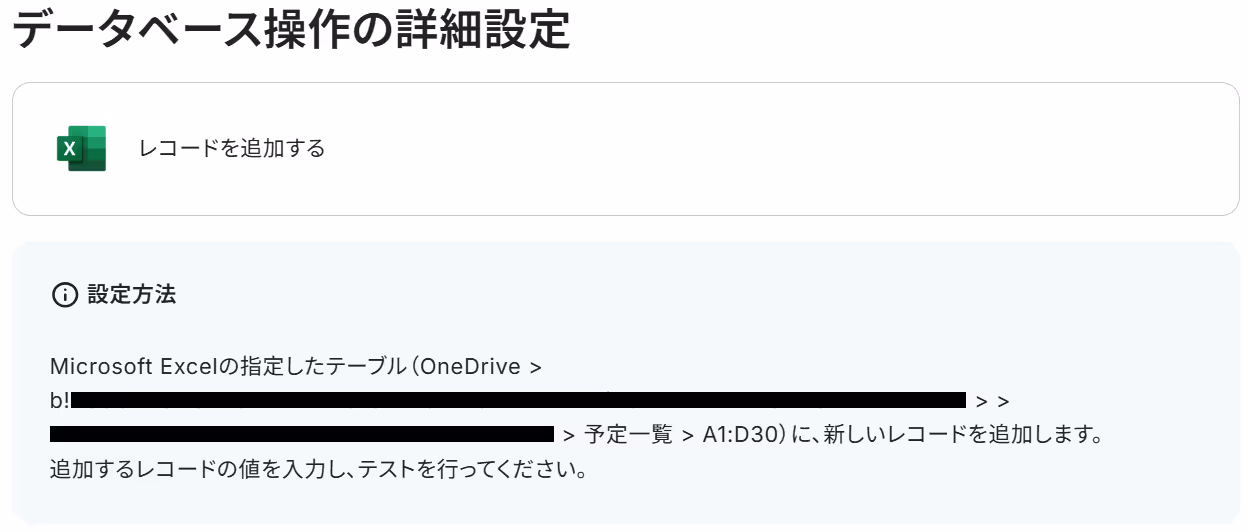 ※【Excel】データベースを操作するオペレーションの設定に関しても併せてご参照ください。