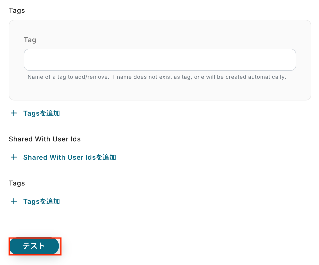 入力が完了したら「テスト」をクリックして、設定した内容でTogglにTime Entryが作成されるか確認しましょう。