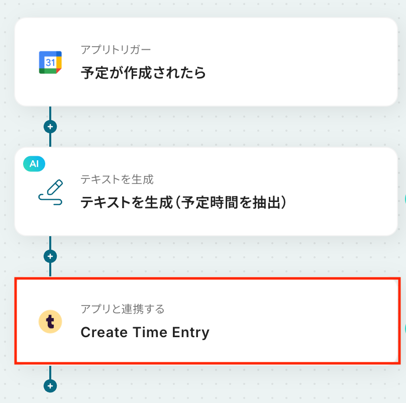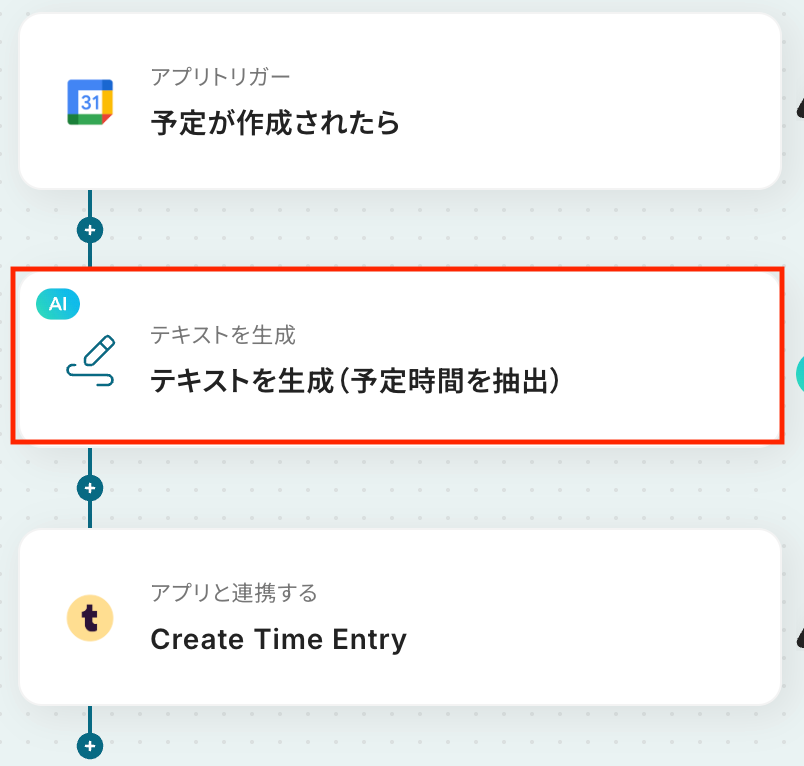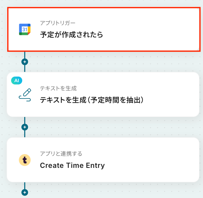 Googleカレンダーのトリガー設定とテキスト生成設定およびTogglのアクション設定