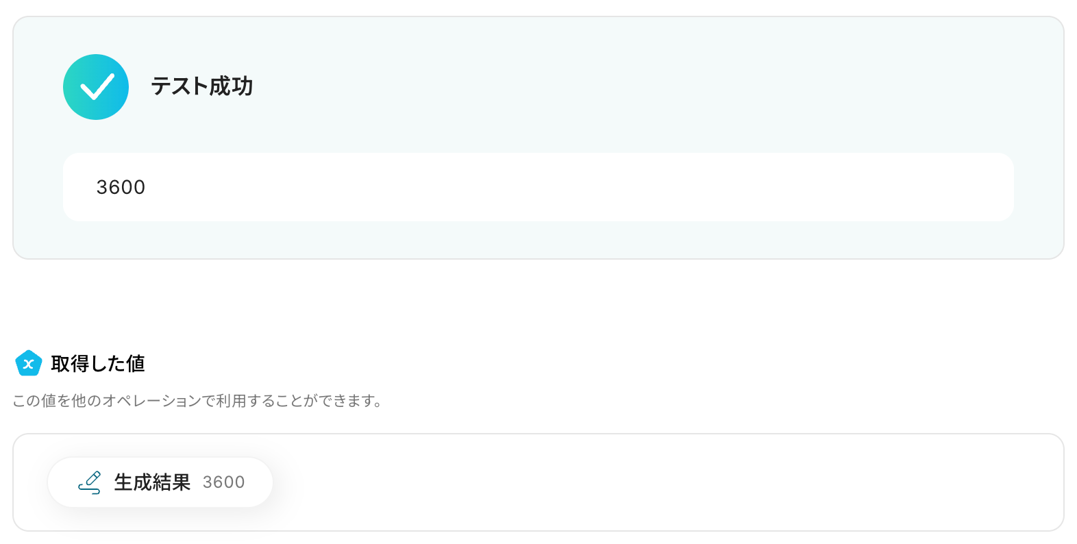 ※取得した値 とは? トリガーやオペレーション設定時に、「テスト」を実行して取得した値のことを指します。 後続のオペレーション設定時の値として利用でき、フローボットを起動するたびに変動した値となります。