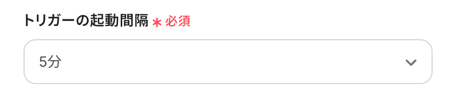 トリガーの起動タイミングは、5分、10分、15分、30分、60分のいずれかで設定できます。 ご利用プラン によって、設定できるトリガーの最短間隔が異なるため、その点は要チェックです。 なお、基本的にはそのプランの最短の起動間隔にしてお使いいただくことをおすすめします。