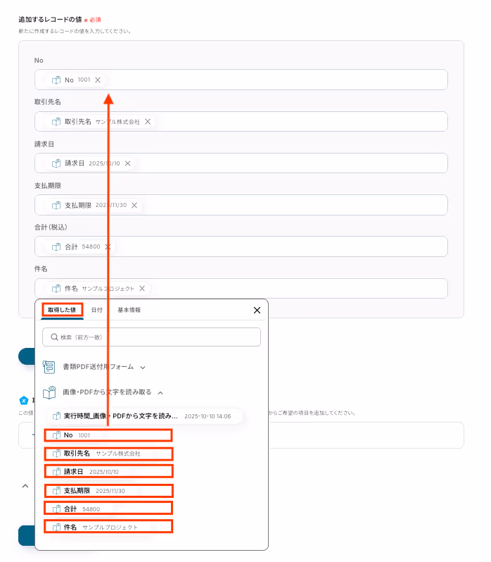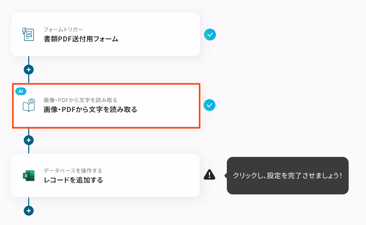 フォームに添付されたPDFから文字を読み取るための設定をします。
