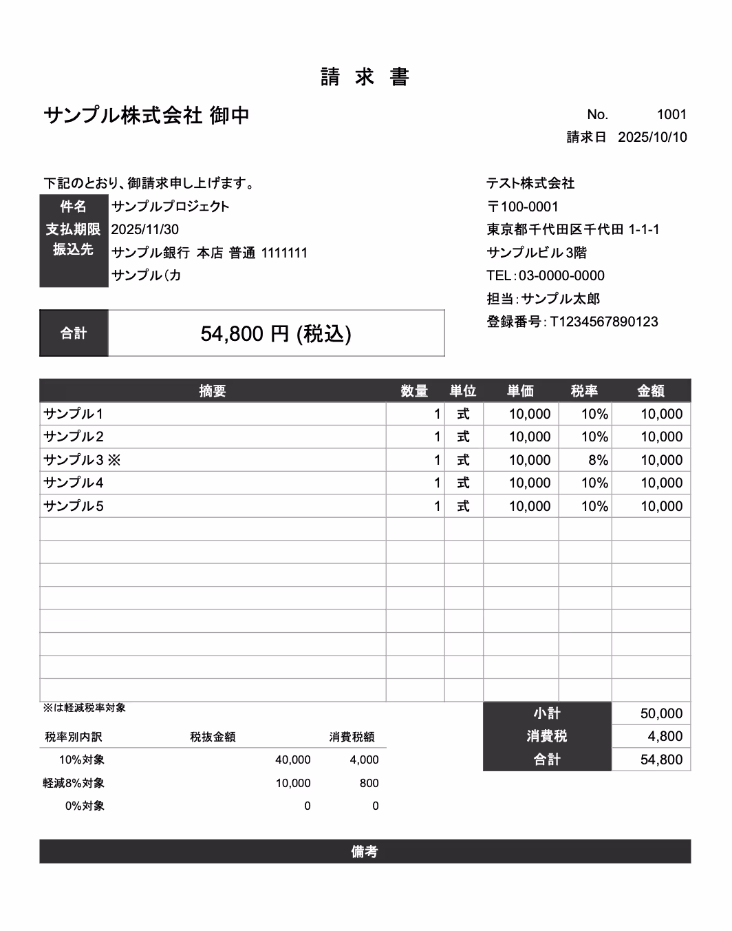 この記事では、サンプルとして以下のPDF(請求書)をフォームにアップロードしています。