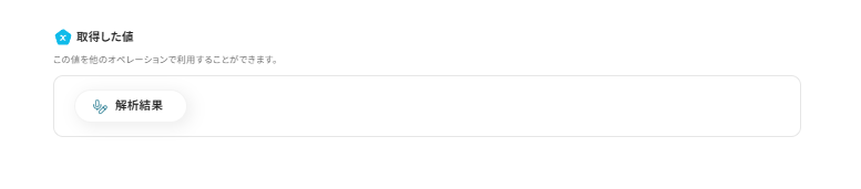 この後、この取得した値(アウトプット)の内容を入力に使用することができます。