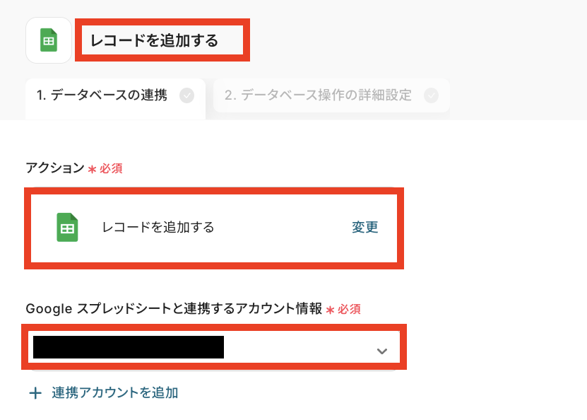 ステップ7:Google スプレッドシートのレコード追加設定