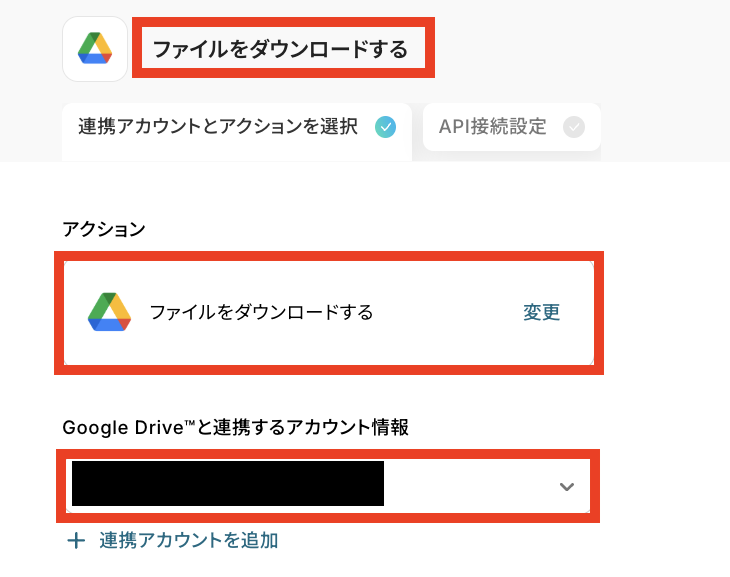 ステップ5:Google Driveファイルのダウンロード設定