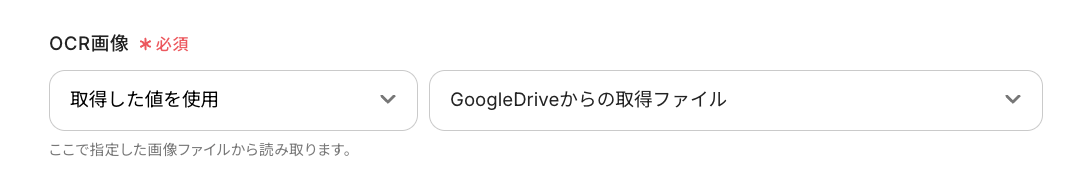 「OCR画像」は「Google Driveからの取得ファイル」を選びます。