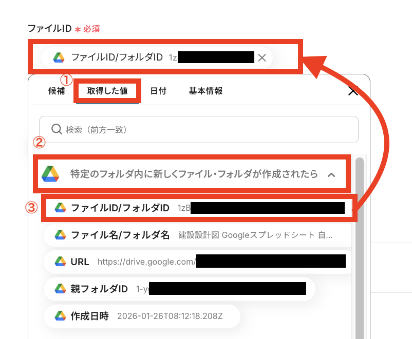 ③「ファイルID/フォルダID」選択