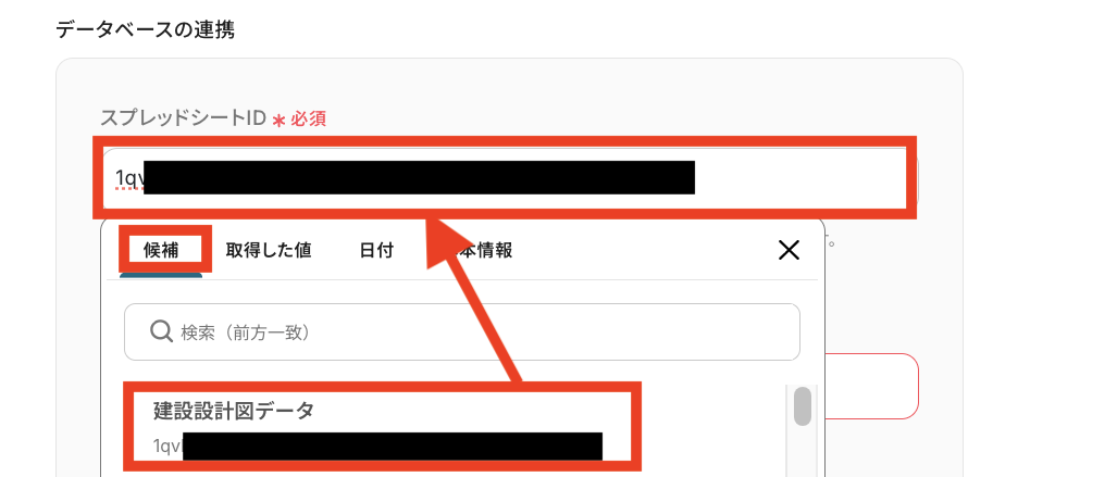 それでは「スプレッドシートID」から指定していきます。