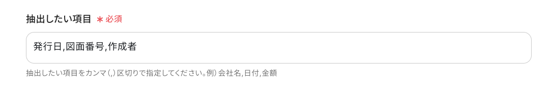- OCR機能で抽出する文字は、図面番号や作成日、担当者名など、管理したい項目に応じて任意に指定してください。