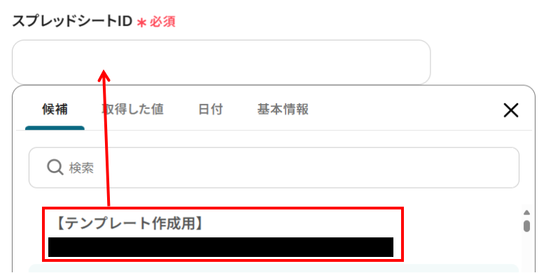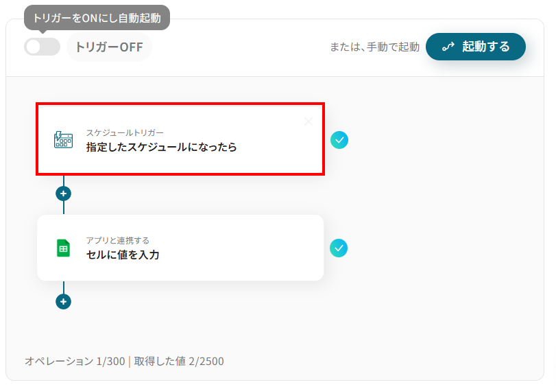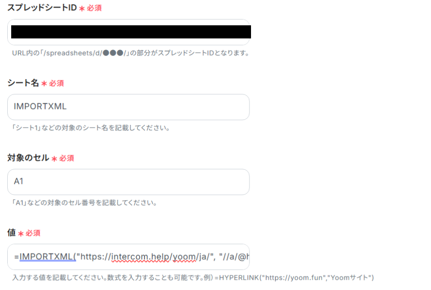 1.次に、Google スプレッドシートのセルに値を入力する設定を行います。