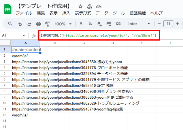 設定した通りのIMPORTXML関数がセルに反映していればOKです!