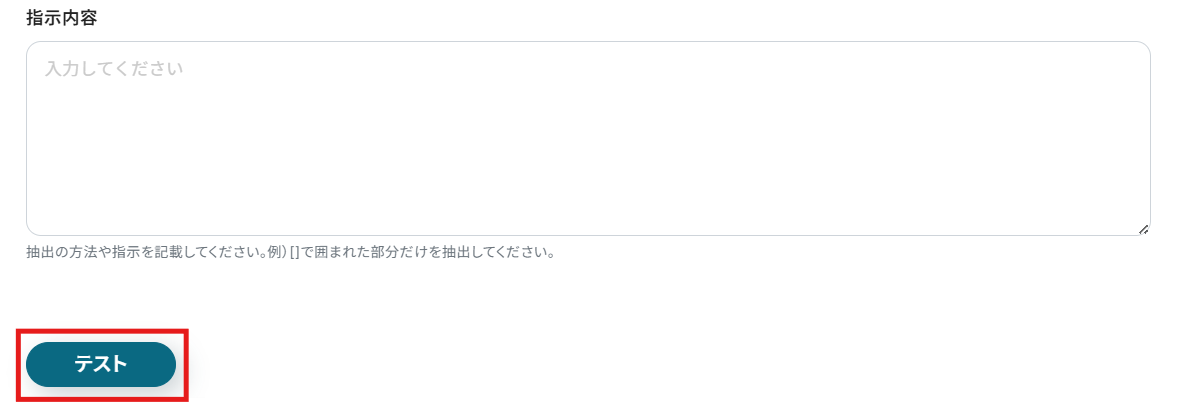 指示内容は空欄のままで問題ないので、「テスト」をクリックしましょう。
