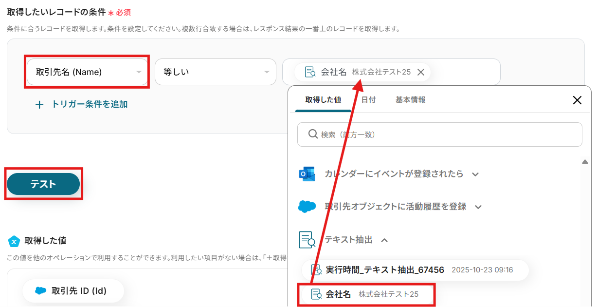 Salesforceの取引先と連携させるためには、取引先の会社名が必要なので、会社名を抽出する設定を行います。
