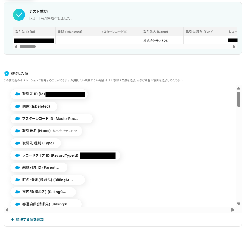 Outlookと同様に、ステップ1でマイアプリ連携したSalesforceのアカウント情報が自動で表示されます。