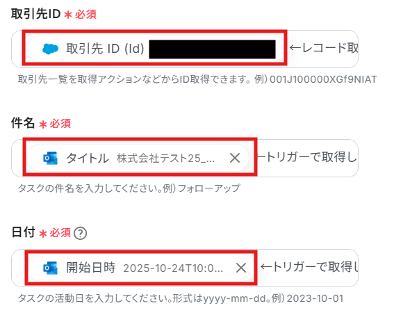 これにより、毎回変動する情報は手動で入力する必要がなく、効率的に連携できます!
