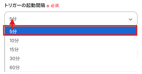・トリガーは5分、10分、15分、30分、60分の間隔で起動間隔を選択できます。