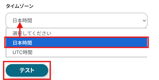 編集欄をクリックして、プルダウンからタイムゾーンを選択します。
