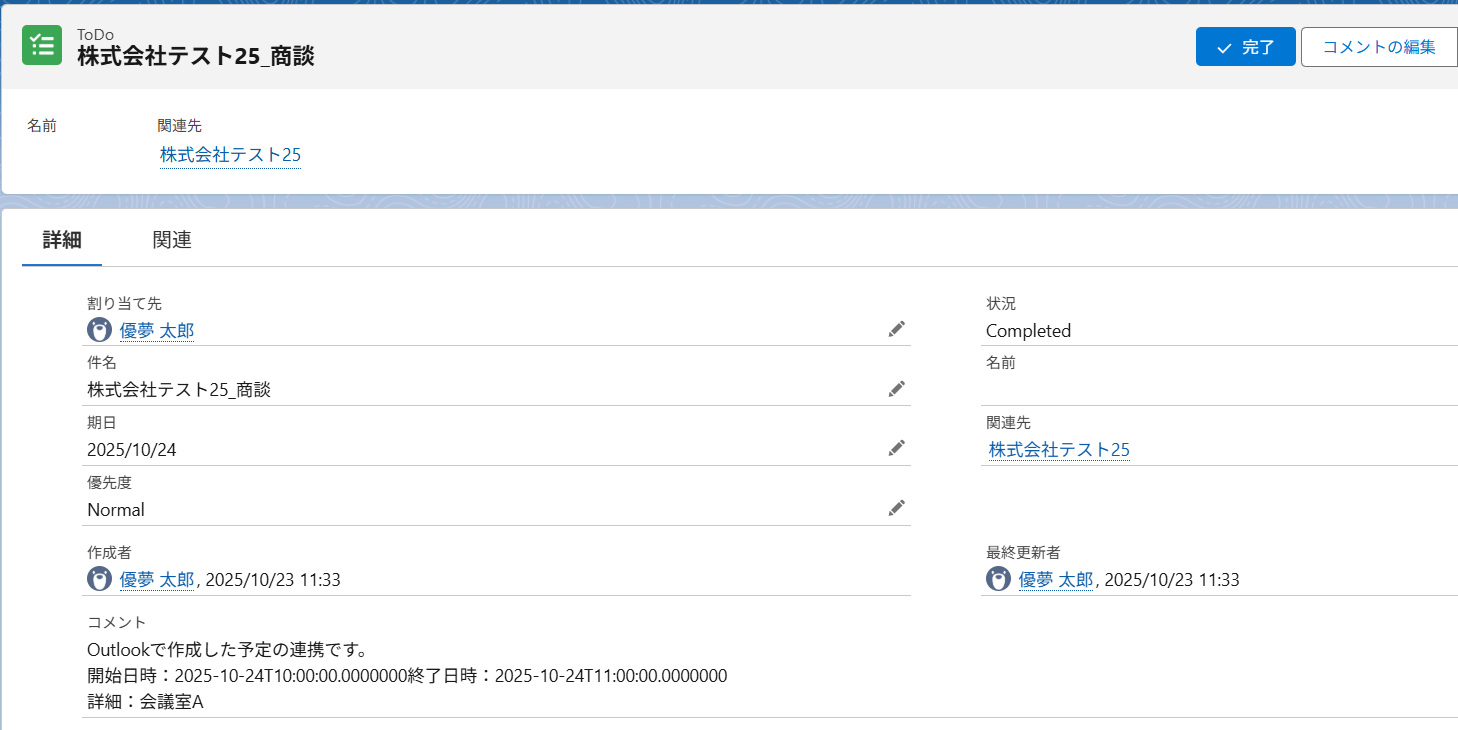 連携したSalesforceの取引先に、活動履歴が登録されました!