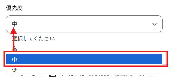 優先度は、編集欄をクリックし、プルダウンから選択できます。