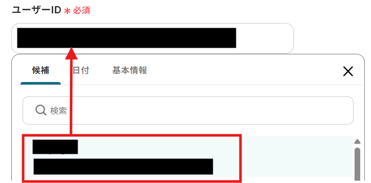 ※デフォルトで入力されている「←レコード取得アクションの値を設定してください」は削除してくださいね!