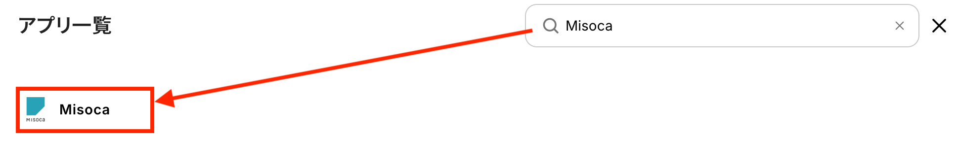 検索ボックスに「Misoca」と入力してアイコンをクリックします。