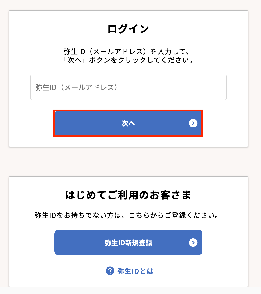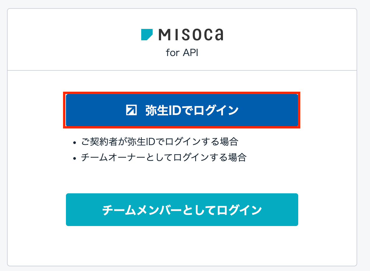 個人でログインする場合は「弥生IDでログイン」、チームメンバーとしてログインする場合は「チームメンバーとしてログイン」を押します。