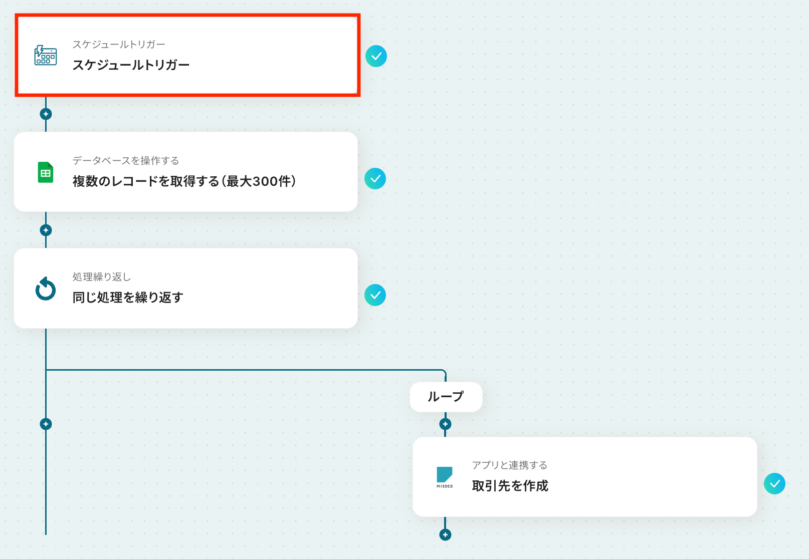 それではここから代表的な例として、毎朝Google スプレッドシートの顧客情報をチェックし、Misocaに取引先として自動登録するフローを解説していきます!
