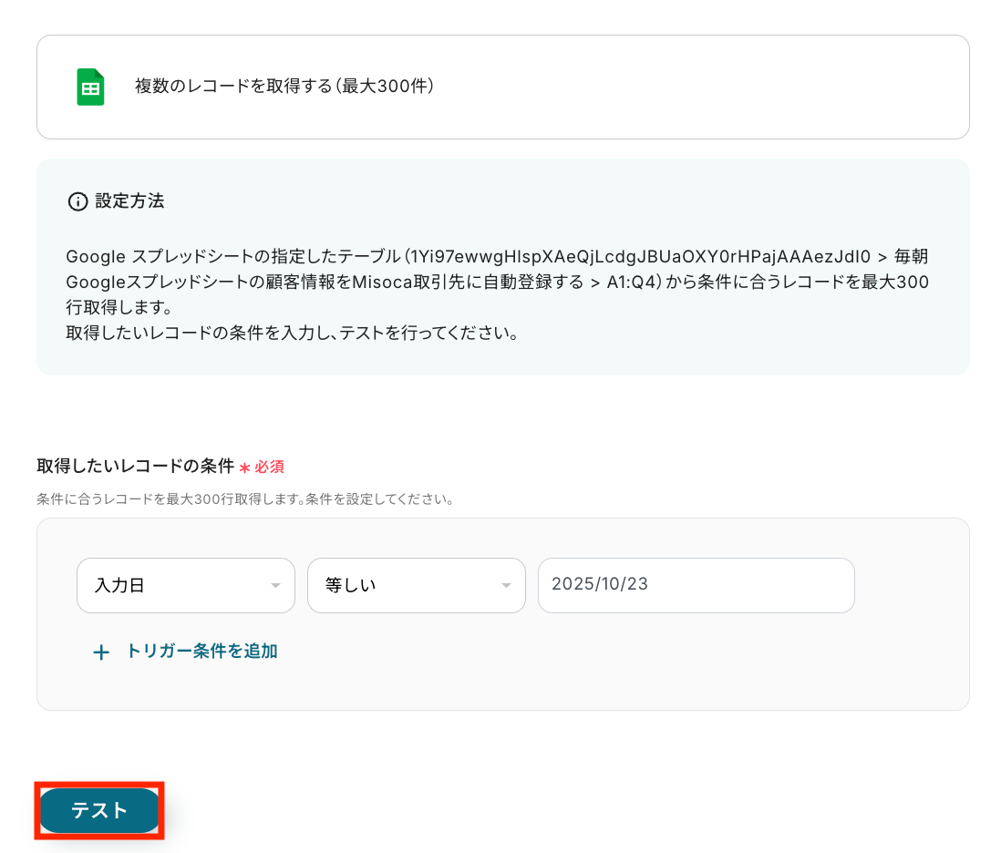 ステップ6:Misocaに取引先を自動登録する