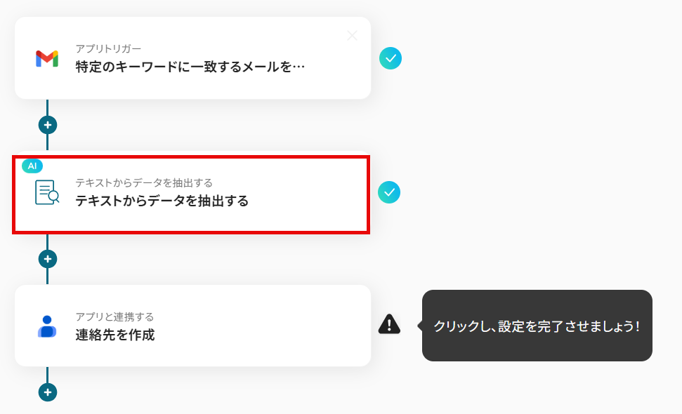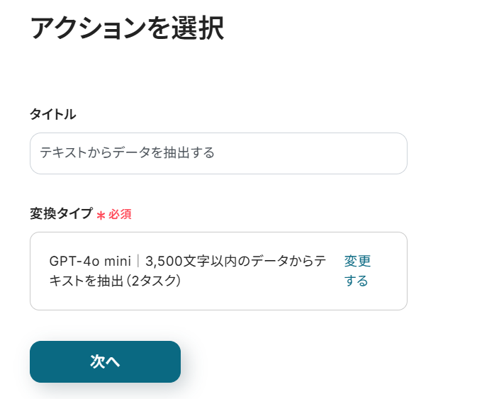 ここでは前項で取得した値からAIでテキストを抽出する設定をしていきますよ!