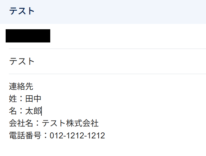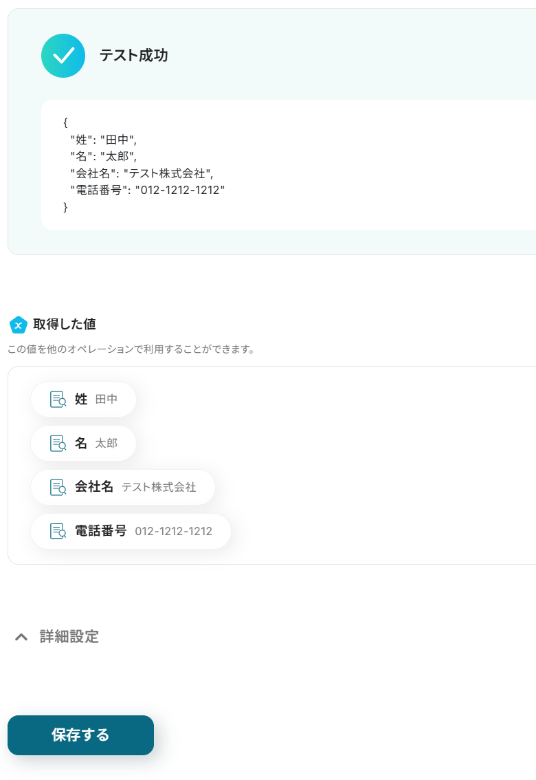 今回は連絡先をGoogleコンタクトに登録するため、「姓」「名」「会社名」「電話番号」の項目を記載しています。