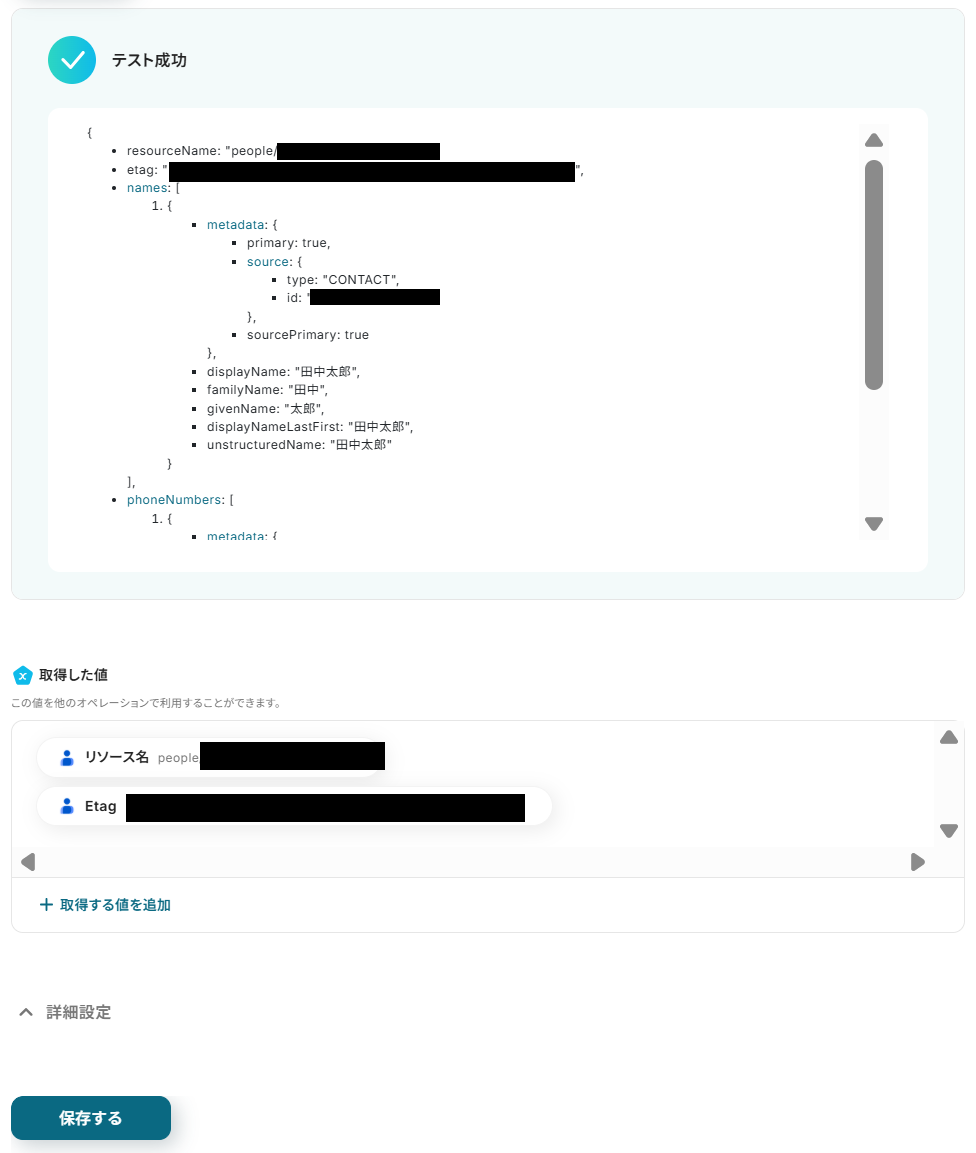前項で取得した値からGoogleコンタクトに連絡先を作成する設定をしていきますよ!