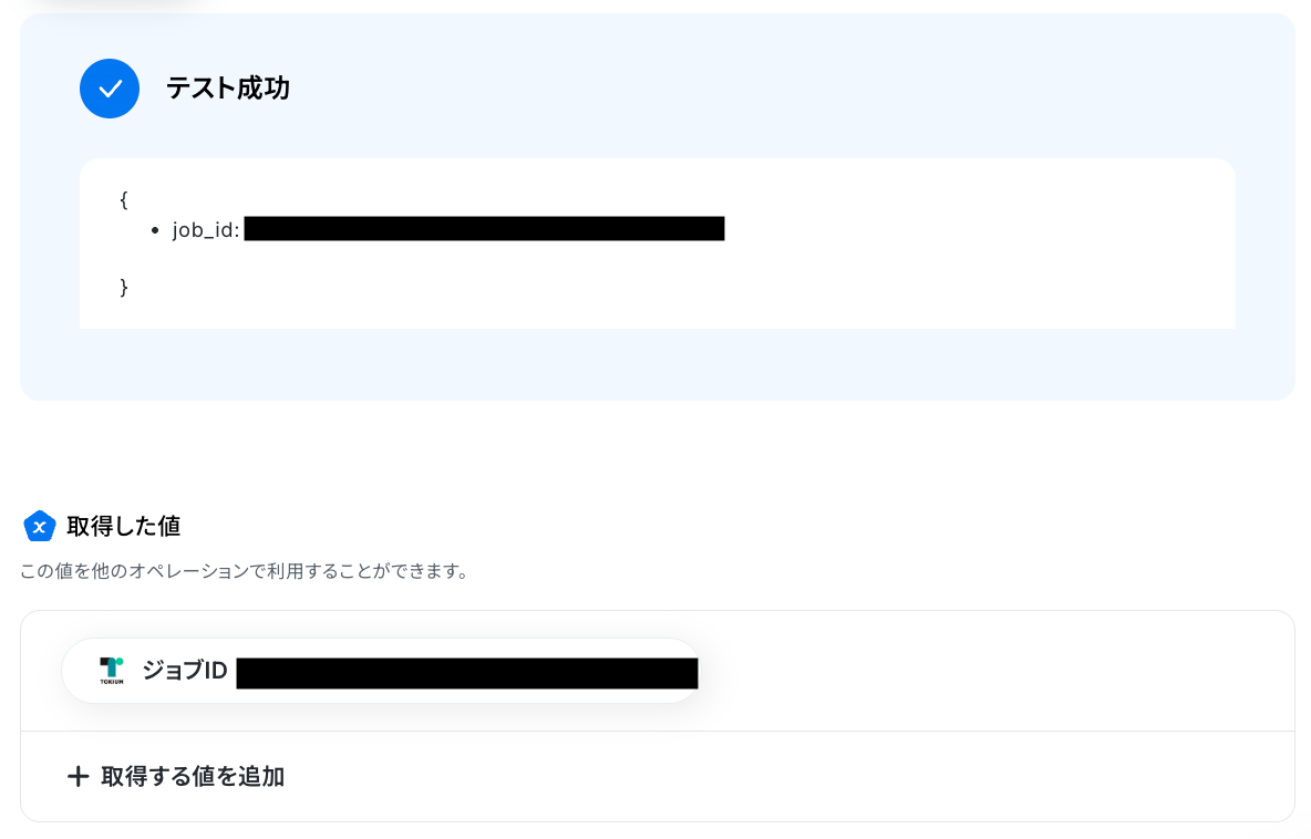 以下の画像の取得した値は、後続のステップで利用可能です。