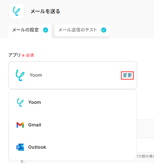 今回はYoom独自のメール機能を利用しますが、変更をクリックすることで別アプリを使用することもできます。