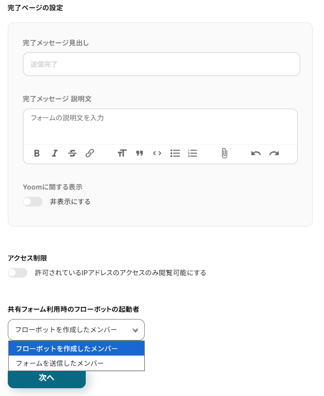 完了ページの設定はYoomの有料プランでご利用いただけます。
