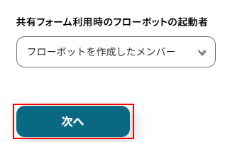 次に、共有フォーム利用時のフローボットの起動者を設定します。