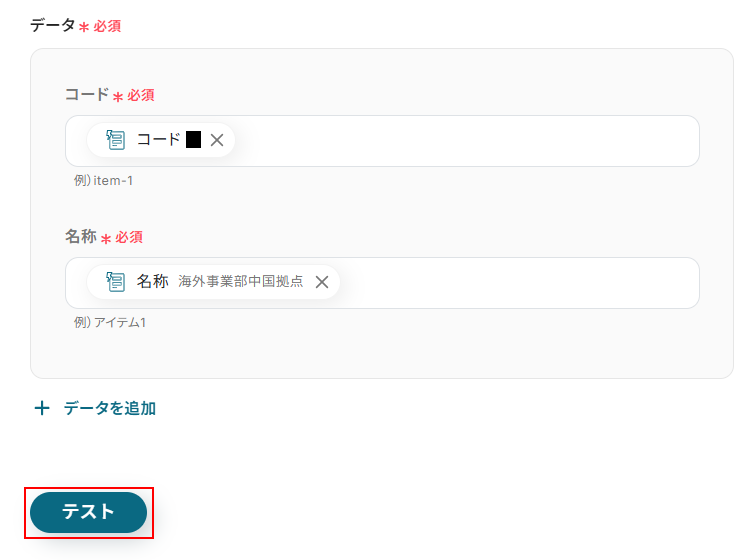 トリガーやオペレーション設定時に、「テスト」を実行して取得した値のことを指します。